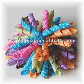 Girl Boutique Solid Korker Curly Ribbon Hair Clips Bows Elastic