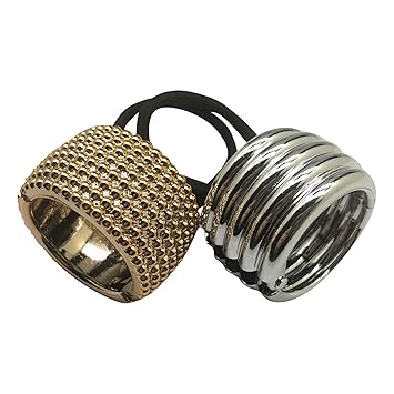 Stylish Silver Gold Metal Metallic Black Elastic Ponytail Holder