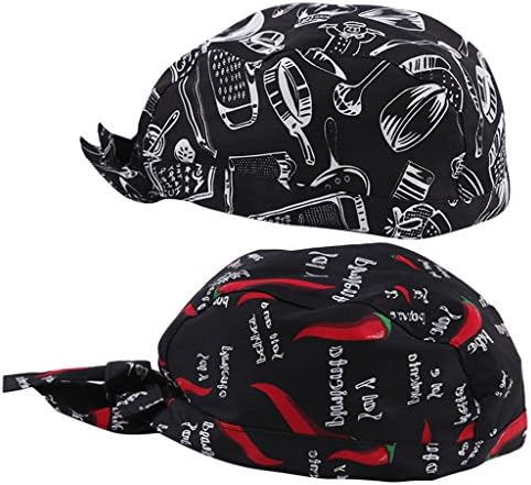 Homyl 2 Pcs Unisex Kitchen Catering Cooking Chef Skull Cap Tie